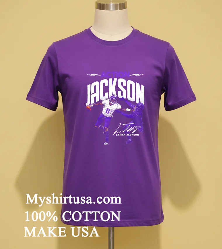Ready to upgrade your fan gear with a tee that feels as good as it looks? Imagine slipping into 100% American Cotton, soft, stretchy, and breathable. Why settle for less? For just $23 USD, you can have this premium style delivered right to your door in 3-5 days across the US. Experience that perfect Vintage, Streetwear, American style! Don’t wait. Action Lamar Jackson Baltimore Ravens Signature Shirt. Shop Myshirtusa now!