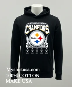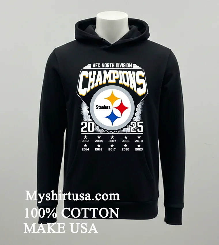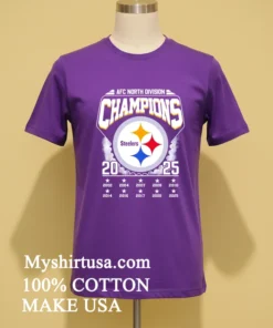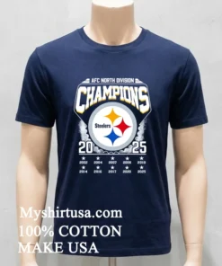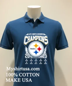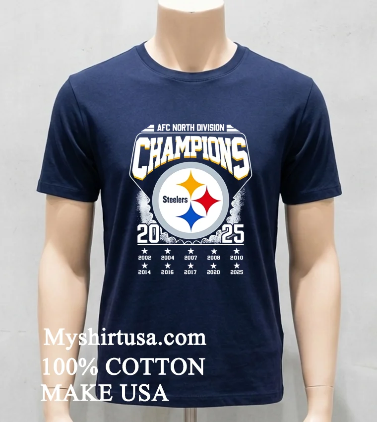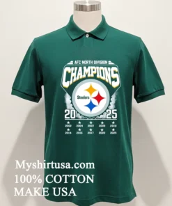 Remember when LeBron James tweeted about how a championship mindset starts long before the final whistle? For us Steelers fans, that 2025 season already feels electric. Watching ESPN, they were dissecting new draft picks, talking about the “rebuilding year” being over. It just clicked: this Afc North Division Champions 2025 Steelers Shirt isn’t just a shirt; it’s a statement of faith, a pre-celebration! It’s for every fan who believes in the roar of Acrisure Stadium, for those who bleed black and gold. We’re seeing sports apparel merge with high-end streetwear lately think “athleisure luxe” with vintage washes and oversized fits dominating the scene. People want to rep their team without sacrificing style. This tee perfectly captures that vibe, letting you show loyalty whether at the tailgate or grabbing a latte. It’s about being ready for that glorious moment, feeling it now.