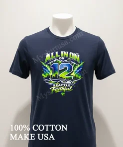 Are you geared up for the next big game day, a tailgate party, or maybe just kicking back with friends to watch the Seahawks dominate? This shirt is the perfect fit. Imagine wearing it during the buzz of a Seattle-themed watch party, or when you’re out and about, representing your team during local celebrations. At myshirtusa.com, you can quickly and easily purchase this iconic tee, ready for any fan event. It’s more than just a shirt; it’s a statement for Seattle Seahawks apparel and true 12th Man gear, blending mountain city skyline charm with electrifying NFL fan shirt spirit.