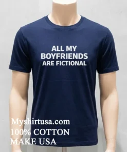 Remember when Olivia Rodrigo posted that selfie, looking all cool and effortlessly chic in a graphic tee, and suddenly everyone was talking about how vintage-inspired comfort was making a huge comeback? It wasn’t just ‘quiet luxury’ dominating the runways; the street style scene, fueled by TikTok trends and a desire for authentic self-expression, was screaming for fun, relatable fashion. That’s where the All My Boyfriends Are Fictional Shirt really shines. Maybe you just binge-watched a season of a fantasy romance, or perhaps you’re deep into your ‘cozy girl’ era, prioritizing comfort and a good book over… well, actual boyfriends. This isn’t just a shirt; it’s a vibe. It’s for the person who owns their love for fictional characters, who finds joy in their imaginary worlds. In a world obsessed with ‘main character energy,’ this tee lets you be the quirky, self-aware lead of your own story, perfectly aligned with the ongoing Y2K resurgence that loves a good pop-culture nod and a dash of playful irony.