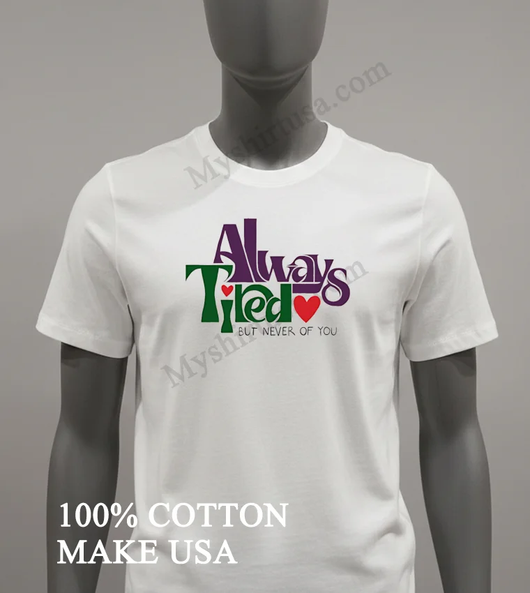 Remember that viral moment when a celeb, let’s say a beloved late-night host, confessed on air, ‘I’m always tired, folks, but never of this amazing audience’? It instantly brought to mind our Always Tired But Never Of You Retro Typography Heart Shirt. This isn’t just a tee; it’s a vibe. Whether you’re a parent navigating endless activities, a student grinding through finals, or someone simply embracing the beautiful, exhausting rhythm of life, this shirt speaks your truth. It’s your go-to for casual Fridays, weekend brunches, or just chilling at home. In today’s fashion world, where ‘comfort-core’ and authentic self-expression are dominating, and sustainability often means investing in versatile, mood-boosting pieces, this tee is a perfect fit. It embodies that ‘vintage-inspired,’ ‘effortless cool’ aesthetic we’re all chasing, proving that relatable style is always in vogue.