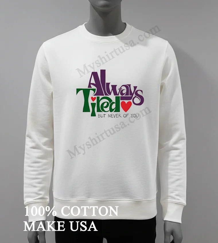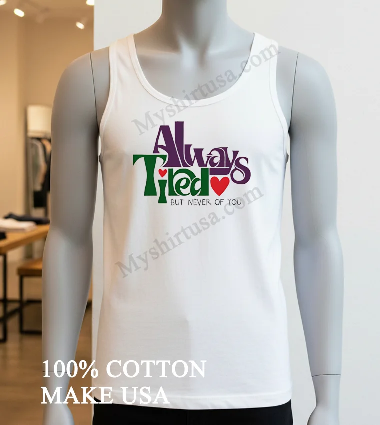 Ready to embrace your truth in style? Why wait? Grab the Always Tired But Never Of You Retro Typography Heart Shirt! Made from 100% American Cotton soft, stretchy, breathable this vintage streetwear gem is just $23. Fast 3-5 day US delivery! Find your perfect American style statement at Myshirtusa today.