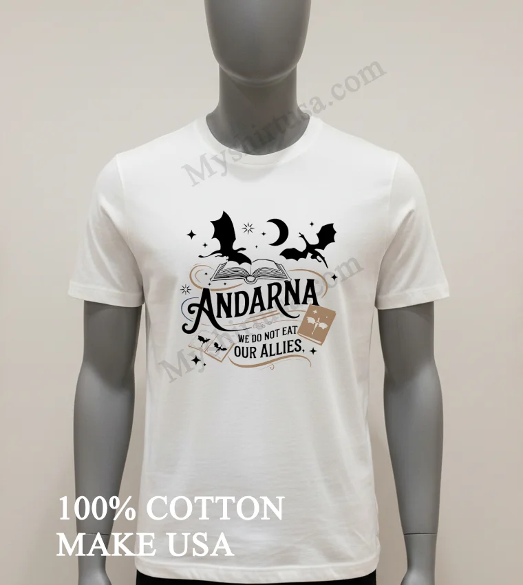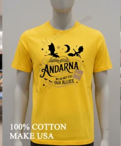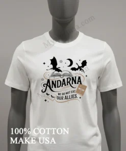 The fantasy world has truly taken over our hearts and, honestly, our closets! With popular book series inspiring everything from streetwear to everyday wear, the Andarna We Do Not Eat Our Allies Dragon Fantasy Book Shirt is perfectly timed. Whether you’re hitting a book club meetup, gearing up for the next big fantasy convention, or just re-reading your favorite chapter, this shirt lets you wear your passion. At myshirtusa.com, getting your hands on this dragon rider apparel, a true fantasy book fan shirt, is quick and easy. It’s more than just a tee; it’s unique dragon shirt literary fandom merch!
