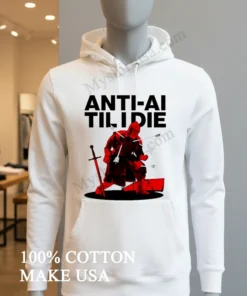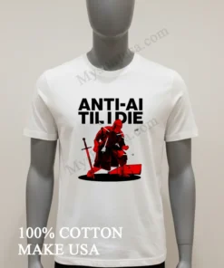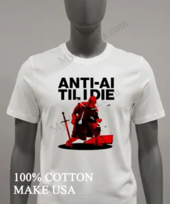 AI is everywhere, fueling conversations from the latest tech expos to fashion design studios, even sparking debate at events like the Met Gala where innovation meets tradition. People are talking, forming opinions, and looking for ways to express their stance on a rapidly changing world. It’s a huge part of American culture! That’s why our site makes it incredibly simple to get your powerful Anti Ai Til I Die Wounded Red Knight With Many Arrows Shirt. This isn’t just a graphic tee; it’s a perfect ‘AI resistance shirt,’ a ‘wounded knight statement,’ and ‘anti-AI apparel’ for today’s conscious consumer. Express your unique viewpoint effortlessly.