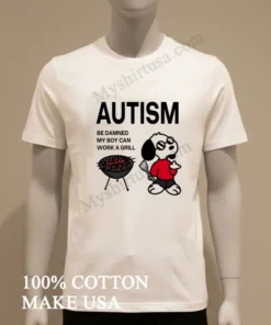 This T-shirt isn’t just for show; it’s a statement for so many moments. Perfect for your next summer BBQ, a family reunion, or proudly showing support during Autism Awareness Month. It’s a genuine conversation starter for any grill master or a loving family member. Find your ‘Autism Empowerment Tee’, ‘Grill Master Snoopy Shirt’, or the specific Autism Be Damned My Boy Can Work A Grill Snoopy Shirt effortlessly at myshirtusa.com. We make finding ‘Snoopy Autism Support’ or ‘Unique BBQ T-shirt’ simple and quick!