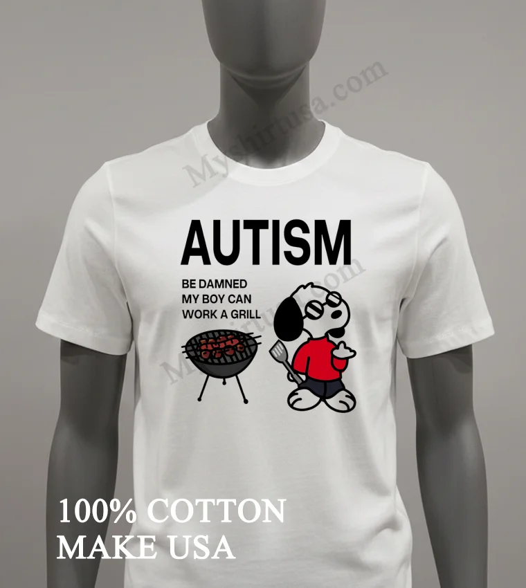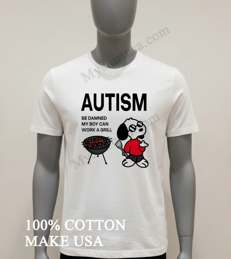 Ready to wear your pride? Why settle when you can have a statement piece that truly speaks to you? Our Autism Be Damned My Boy Can Work A Grill Snoopy Shirt is 100% American Cottonsoft, breathable, and just $23. Get yours delivered 3-5 days in the US. Elevate your Vintage, Streetwear, or American style today! #GrillMasterTee #AutismPride #SnoopyFashion #USATees #StatementShirt. Only at Myshirtusa.