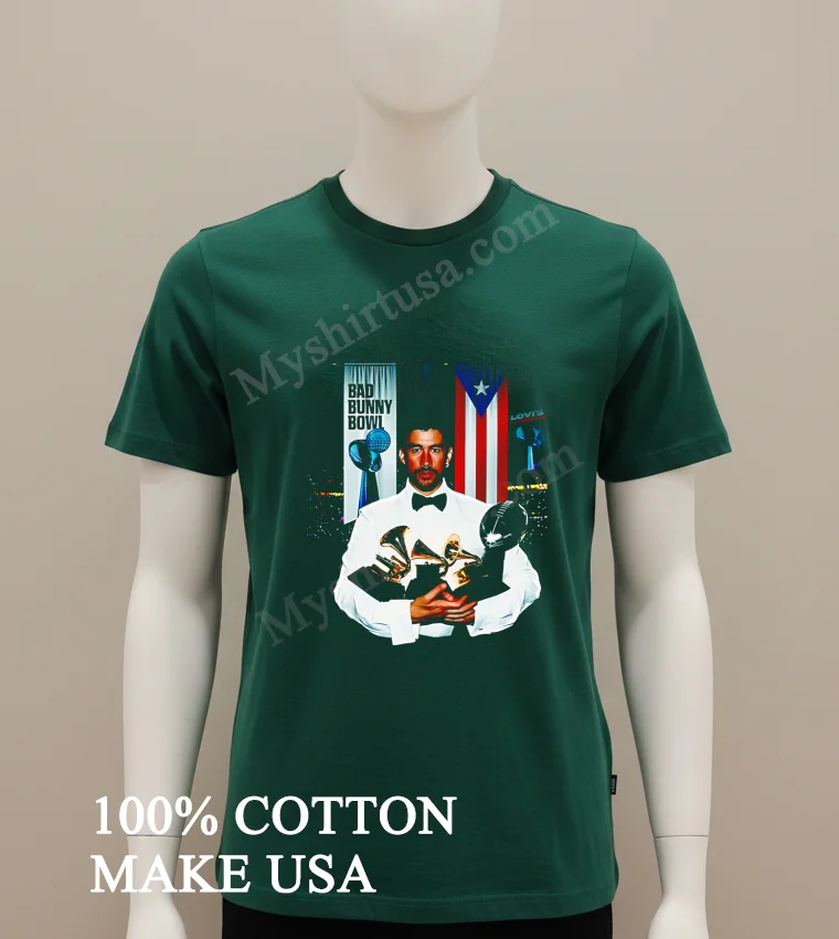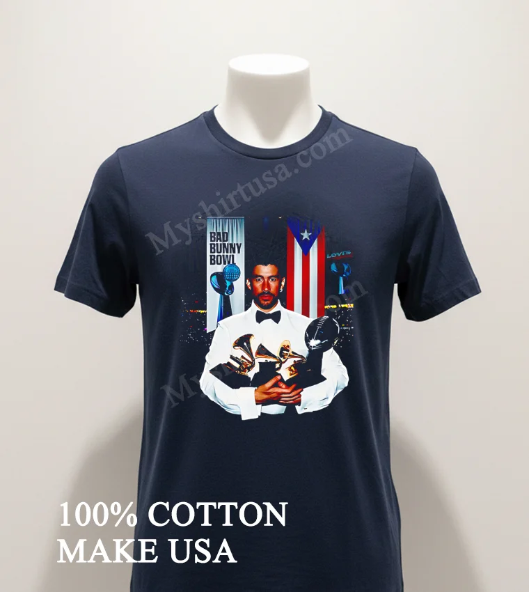 Bad Bunny isn’t just an artist; he’s a cultural phenomenon, a true moment in fashion and music. From his electrifying Grammy wins that electrify the music scene to his unforgettable Coachella performances, and his profound pride for Puerto Rico always on display he’s truly iconic. Want to capture that vibe for yourself, whether it’s for a concert or just everyday cool? At myshirtusa.com, it’s incredibly quick and easy to grab your own Bad Bunny Bowl Puerto Rico Flag Holding Multiple Grammy Music Awards Shirt. Explore exclusive Bad Bunny merchandise, official Grammy Awards fan apparel, and vibrant Puerto Rico flag clothing celebrate the legend in style!