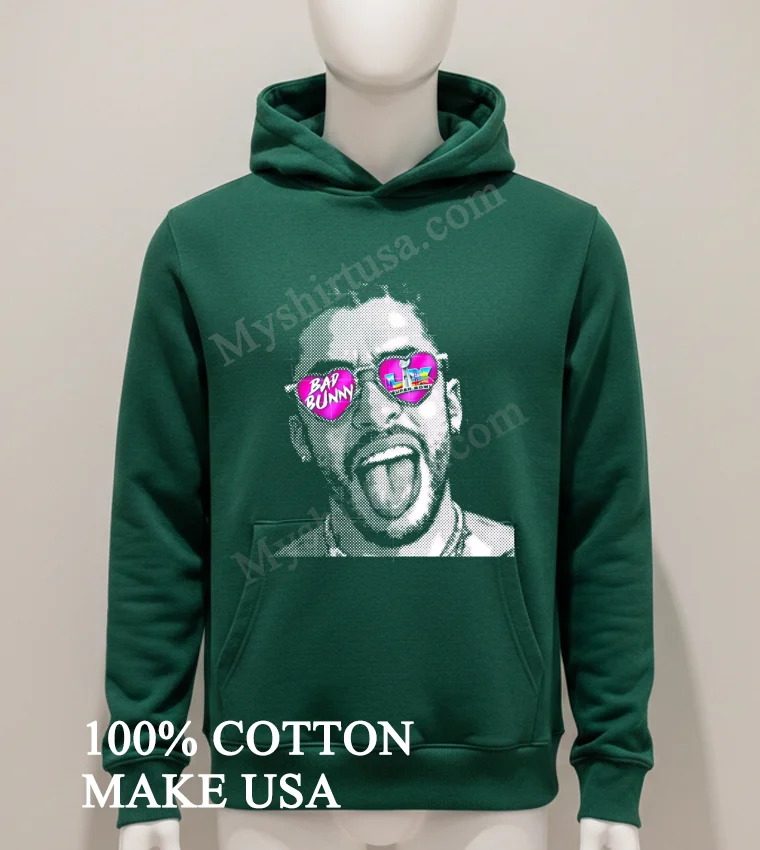 Now, let’s talk details about this gem. What really sets this shirt apart from just any band tee or graphic top? It’s the artistry. The design isn’t just a simple print; it’s a grid of those instantly recognizable heart glasses, paying homage to Bad Bunny’s unforgettable Super Bowl Halftime Show performance. This kind of nuanced pop culture reference stands out, making it a conversation starter rather than just another graphic. And the material? We’re talking premium 100% American Cotton. It’s not that stiff, scratchy stuff you sometimes get. This fabric is soft, breathable, and has just the right amount of stretch for all-day comfort, whether you’re layering it under a flannel for a vintage Americana vibe or wearing it solo with some distressed denim for that effortless cool-kid look. To keep this beauty looking fresh, turn it inside out before tossing it in the wash on cold, tumble dry low, or even better, hang dry. No harsh bleaches, no dry cleaning necessary. Treat it right, and it’ll be a staple in your wardrobe for years.