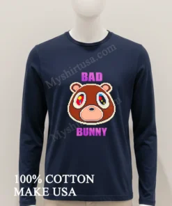 Remember the buzz during the latest Coachella or when Bad Bunny dropped his new album, setting new trends from Miami to LA? Or even the recent discussions about Kanye’s early, iconic “Dropout Bear” era still shaping streetwear? This tee perfectly captures that undeniable cultural vibe, a real nod to those pivotal moments in music and fashion. At myshirtusa.com, snagging your own Bad Bunny Pixel Art Kanye West Dropout Bear Head Shirt is a total breeze, making it easy to grab your Bad Bunny fan shirt, authentic Kanye Dropout Bear apparel, or that unique pixel art tee to show off your music icon shirt style.