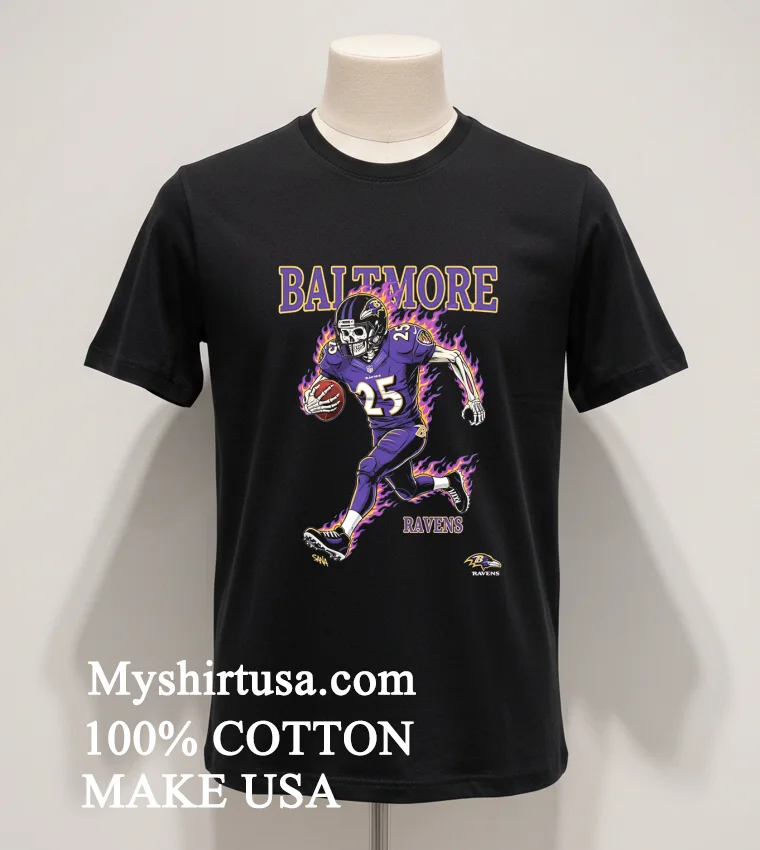 Now, let’s really unpack what makes this shirt a cut above. Forget those flimsy, boxy tees that lose their shape after a wash or two. The design on this Ravens shirt isn’t just a print; it’s a piece of art. The “Skeleton Player Burning” graphic captures that raw, fiery intensity of Ravens football it’s bold, detailed, and utterly unique, setting it apart from generic team merchandise. You won’t find this exact vibe just anywhere. Crafted from 100% American Cotton, it feels incredibly soft against your skin, with just the right amount of stretch for all-day comfort, whether you’re jumping up for a touchdown or just chilling out. This isn’t just a basic tee; it’s built with a modern American cut that’s flattering without being restrictive, making it versatile enough to pair with ripped jeans for a casual street look, or layered under a denim jacket for those cooler evenings. To keep that vibrant graphic looking sharp, turn it inside out before washing in cold water with similar colors. Skip the bleach, tumble dry on low, and definitely don’t iron directly over the design that’s a quick way to ruin it! Treat it right, and this shirt will be your go-to for seasons to come.