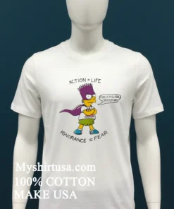 Ready to make your statement? Why settle for ordinary? Our Bart Action Life Ignorance Fear Shirt is 100% American Cotton: soft, stretchy, and breathable. Priced at just $23 USD, enjoy 3-5 day US delivery for this Vintage, Streetwear, American style tee. Don’t miss out on quality and impact! Grab yours from Myshirtusa today!