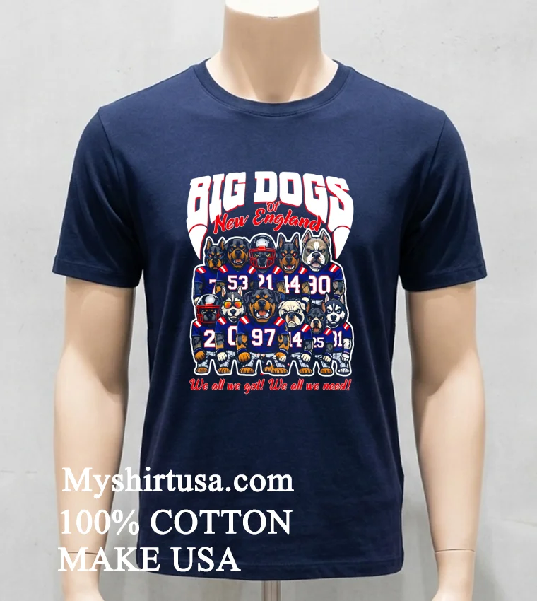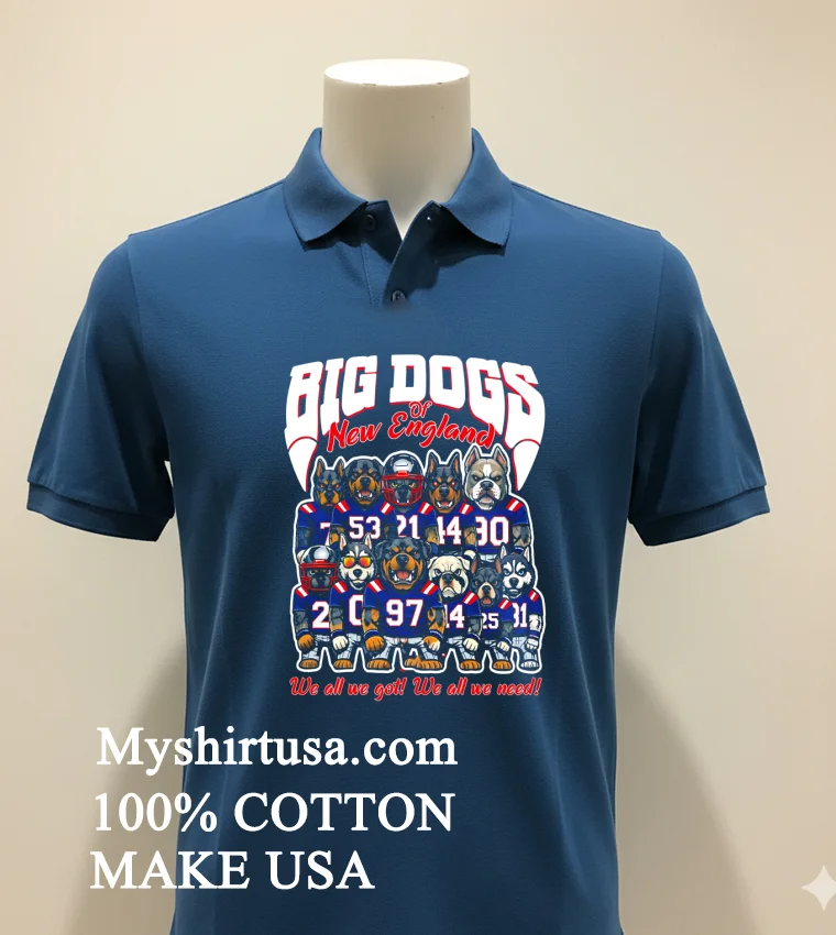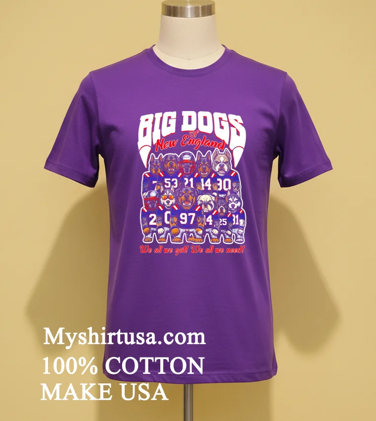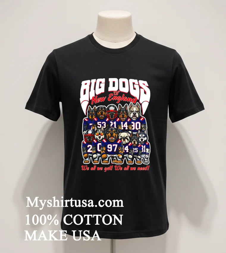 Ready to wear your New England pride? Why settle for anything less than premium comfort and unmistakable style? Grab your Big Dogs Of New England We All We Got We All We Need Shirt today! Crafted from 100% American Cotton for softness and breathability. At just $23 USD, with 3-5 day US delivery, and styles like Vintage, Streetwear, and pure American cool, what are you waiting for? Represent your roots with Myshirtusa! #NewEnglandFashion #AmericanMade #GraphicTee #StreetwearUSA #BigDogsNE