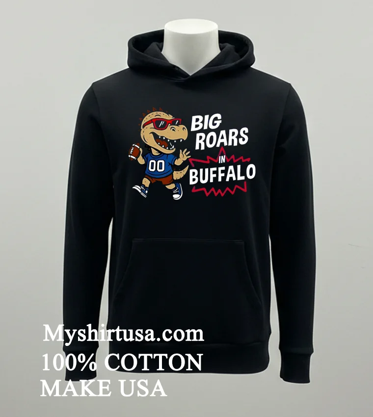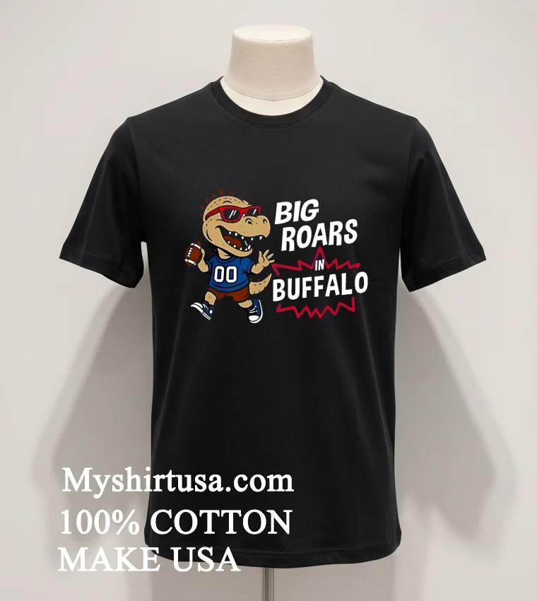Remember that buzz when Travis Kelce rocked a bold, graphic tee off the field, sparking a whole new wave of “casual cool” in sports fashion? Well, that’s exactly the vibe the Big Roars In Buffalo Bills Dinosaur Cartoon Funny Shirt captures! Imagine the scene: it’s Sunday, you’re at a friend’s place in Orchard Park, game day spread laid out, and the commentators are hyping up the Bills’ next big play. You’re wearing this shirt, the one with the hilarious T-Rex in a Bills helmet, stomping its way to a touchdown. It’s a guaranteed conversation starter, perfect for tailgates, watch parties, or just showing off your Buffalo pride with a laugh. This year, “fan fashion” is all about blending vintage sports aesthetics with humor and personal expression a trend we’re seeing everywhere from TikTok’s latest “get ready with me” videos to major fashion blogs highlighting comfort and personality. It’s not just about supporting your team; it’s about doing it with style and a smile, leaning into that playful, authentic American spirit that defines today’s streetwear and graphic tee culture.