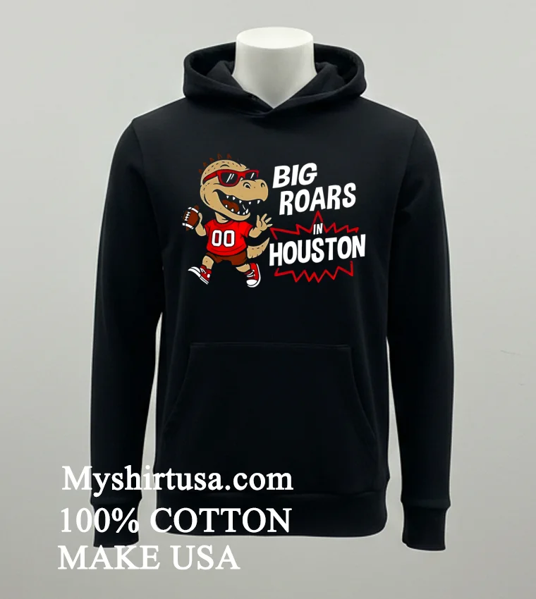 Why settle for boring when you can wear your roar? Embrace your playful spirit with the Big Roars In Houston Texans Dinosaur Cartoon Funny Shirt! Crafted from 100% American Cotton, it’s soft, stretchy, and breathable everything you want in a premium tee for just $23 USD. Enjoy free US delivery in 35 days, bringing this vintage-inspired, streetwear-ready, American style straight to your door.