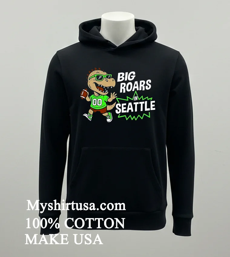 Ready to unleash your inner prehistoric fan? Why settle for boring when you can wear a legend? Grab your Big Roars In Seattle Seahawks Dinosaur Cartoon Funny Shirt today! Crafted from 100% American Cotton, soft, stretchy, breathable. Just $23 USD, with 3-5 day US delivery. It’s the ultimate vintage, streetwear, American style. Roar with Myshirtusa!