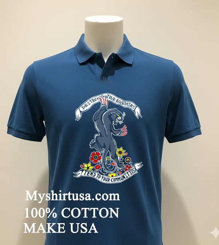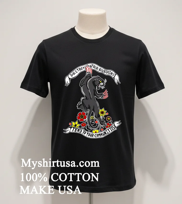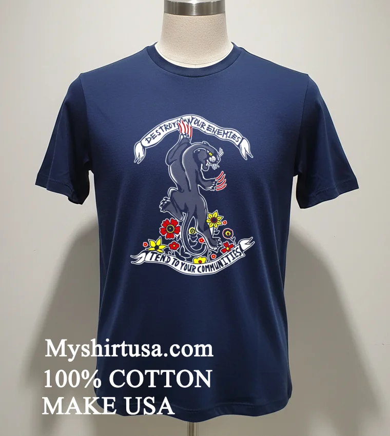 Ready to wear your values and make a powerful statement? Why blend in when you can own the Black Panther Destroy Your Tend To Your Communities T Shirt? Get this 100% American Cotton, soft, breathable tee for just $23 USD with 3-5 day US delivery. Embrace Vintage, Streetwear, American style now! Don’t miss out.