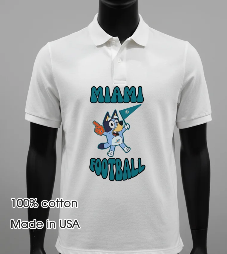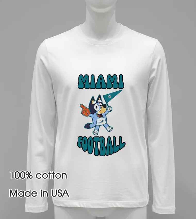 Ready to upgrade your game day style? Why settle for ordinary when you can rock the iconic Bluey Miami Dolphins Football Shirt? Crafted from 100% American Cotton, super soft, stretchy, and breathable, it’s just $23. Get yours delivered in 3-5 days in the US and embrace that Vintage, Streetwear, American style! Experience the Myshirtusa difference!