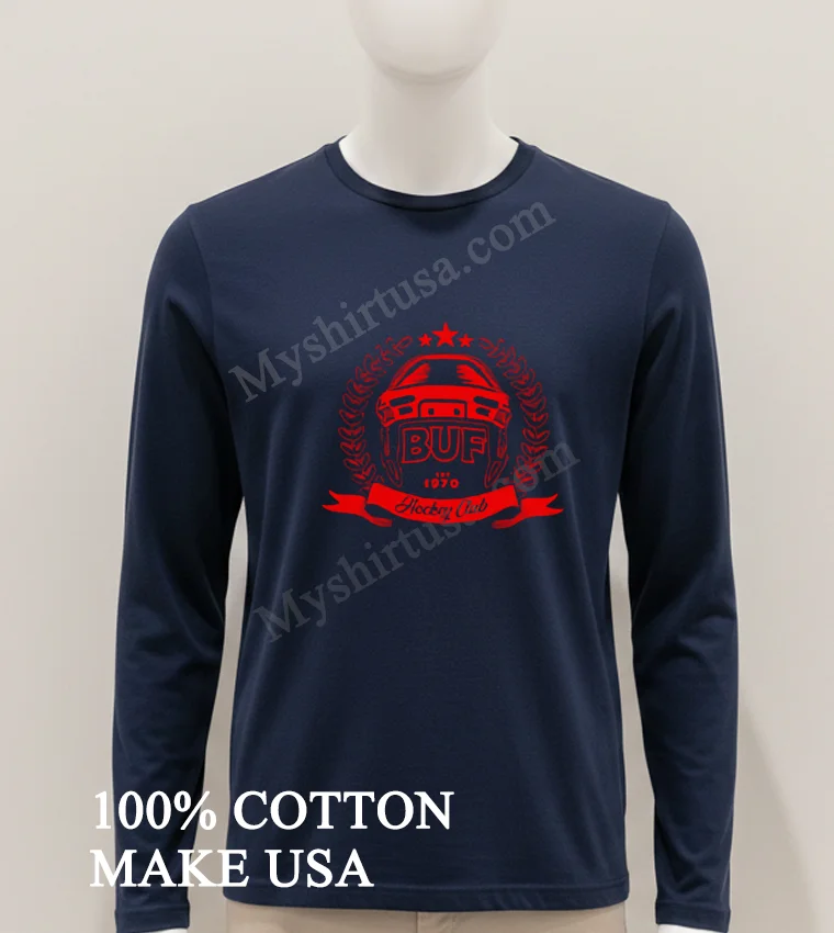 Ready to upgrade your wardrobe? What are you waiting for? This Buf Est 1970 Hockey Club Laurel Wreath Helmet Shirt isn’t just a tee; it’s a statement. Crafted from 100% American Cotton soft, stretchy, breathable for just $23. Get yours delivered in 3-5 days! Embrace vintage, streetwear, American style. Click ‘Add to Cart’ now at Myshirtusa!