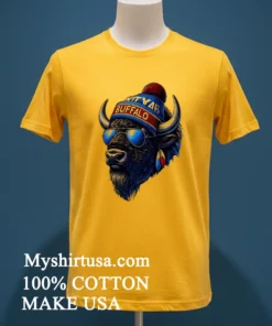 Let’s talk about what makes this tee truly special. While other shirts might just slap a logo on, the Buffalo Bills Knit Yab Buffalo Buffalo Mascot Wearing Sunglasses Hat Shirt design is a masterpiece of playful nostalgia. It’s not just any Buffalo mascot; it’s a Knit Yab Buffalo imagine a cozy, slightly quirky knitted texture, giving the graphic an almost tactile, comforting feel, enhanced by those cool sunglasses and a jaunty hat. This unique artistic interpretation sets it miles apart from your standard, flat team logo tees. It speaks to a vintage revival, where unique, hand-drawn aesthetics blend with modern comfort. Crafted from 100% American Cotton, the fabric is incredibly soft, breathable, and offers just the right amount of stretch. It’s a relaxed fit, perfect for layering under a denim jacket on a cool evening or wearing solo with your favorite distressed jeans and sneakers for that quintessential American streetwear look. To keep this gem looking fresh, simply machine wash cold with similar colors, tumble dry low, and avoid ironing directly on the print. It’s designed to be lived in, loved, and last through countless game days and casual outings.
