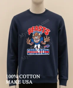 Halloween’s knocking, and the Bills season roars! Rock this awesome tee at your next tailgate, a spooky game watch party, or even trick-or-treating. Perfect for embracing fall vibes and showing team pride. Find yours easily at myshirtusa.com your spot for the Buffalo Bills Monsters Mascot Beasts Of The Gridiron Halloween Shirt, best Bills Halloween shirt, Bills mascot shirt, and Gridiron Halloween gear!