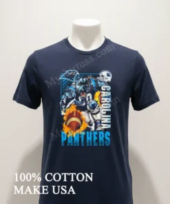 From the electrifying energy of a live game at Bank of America Stadium to major tailgates and even recent pop culture events celebrating team spirit the Carolina Panthers are always in style! This tee is perfect for showing your fierce pride. Easily grab your dynamic Panthers football tee, featuring that bold mascot claw fire ball graphic. It’s ultimate NFL fan apparel, delivering game day shirt vibes for every occasion.