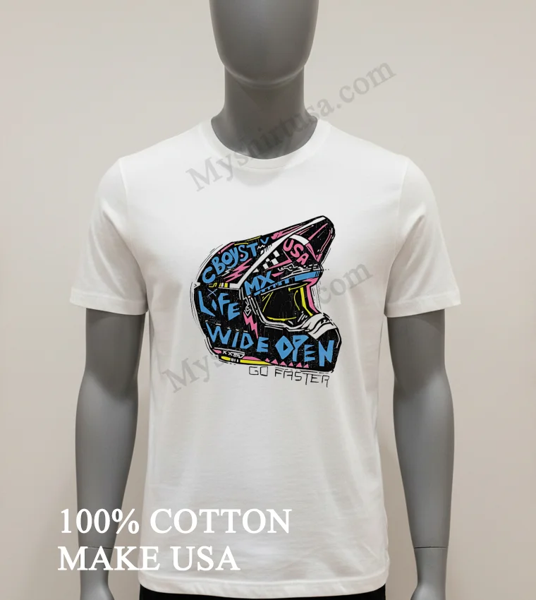 Ready to embrace the lifestyle? Why settle for basic when you can wear a statement? Grab your Cboys Tv Life Wide Open Mx Usa Go Faster Helmet Design Shirt today! Crafted from 100% American Cotton, it’s soft, stretchy, and breathes with you. For just $23 USD, you can own this essential piece of Vintage, Streetwear, American style, delivered right to your door in 3-5 days within the US.