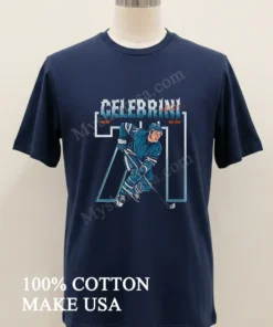 Ready to celebrate the future of hockey? Don’t just watch the gamebe an active part of it! Grab your Celebrini Center San Jose 71 Hockey Player Graphic Shirt today. Crafted from 100% American Cotton, soft, stretchy, and breathable, this $23 USD tee guarantees premium Vintage, Streetwear, American style. With a commitment to quality, we promise fast 3-5 day US delivery right to your door. Why wait another moment to show your pride? Elevate your game day and everyday style with Myshirtusa!