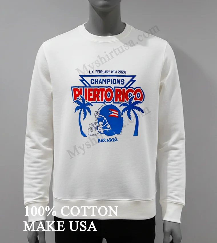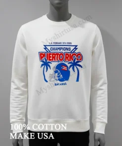 Why wait to wear your pride? Snag your Champions Puerto Rico February 8Th 2026 Football Helmet Bacardi Shirt now! Crafted from 100% American Cotton, it’s incredibly soft, stretchy, and breathable. At just $23 USD, with swift 3-5 day US delivery, this Vintage, Streetwear, American style tee is irresistible. Don’t miss out on true quality! #PuertoRicoFan #AmericanStyle #StreetwearFashion #FootballShirt #Myshirtusa