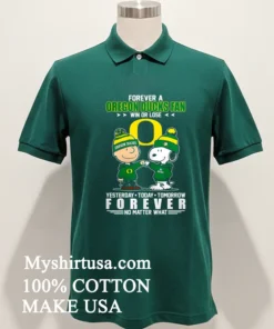 Why wait for game day? Show your pride now! Get your Charlie Brown And Snoopy Forever A Oregon Ducks Fan Win Or Lose Yesterday Today Tomorrow Forever No Matter What Shirt today. Made from 100% American Cotton soft, stretchy, breathable for just $23 USD. Enjoy 3-5 day US delivery! It’s the ultimate Vintage, Streetwear, American style tee.