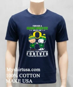 Got my Charlie Brown And Snoopy Forever A Oregon Ducks Fan Win Or Lose Yesterday Today Tomorrow Forever No Matter What Shirt from Myshirtusa so fast 3 days with free shipping, just like Sarah L. mentioned! “Always great quality,” Mark T. reviewed, and I agree. The quick delivery makes me happy, though I always wonder about return policies. This tee feels awesome, easily one of my new go-to’s. Pure joy!