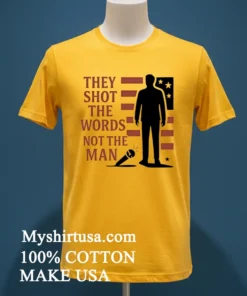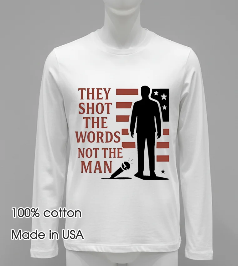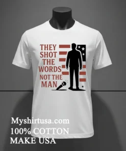 Ready to make a statement and embrace authentic American style? Why wait when you can get premium quality delivered right to your door? Our Charlie Kirk They Shot The Words Not The Man Shirt is crafted from 100% American Cotton soft, stretchy, breathable, and priced at just $23 USD. Experience fast 3-5 day delivery in the US. Isn’t it time your wardrobe reflected your voice? Order your Vintage, Streetwear, American style tee today!