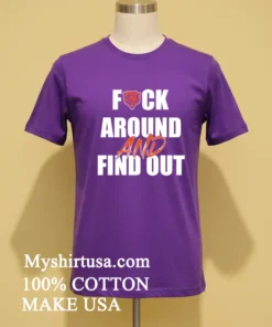 Let’s dive into what truly sets this tee apart, because, let’s be real, not all T-shirts are created equal. First, the design itself isn’t some cheap, peel-off decal. The “Fuck Around And Find Out” slogan, paired with classic Bears imagery, is printed with a high-quality process that feels like it’s part of the fabric, not just slapped on. It’s sharp, vibrant, and looks like a permanent badge of honor. Unlike those flimsy, thin shirts you sometimes get online, this one has a satisfying, substantial feel to it a true mark of quality.