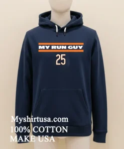Remember that wild trending moment last season when Coach Flack subtly hinted on his pre-game show that their “run game was gonna be a showstopper, a real ‘my guy’ kind of performance”? Well, that talk sparked a whole movement, and suddenly everyone was looking for ways to rep that powerful spirit! The Chicago Bears My Run Guy 25 Banner Shirt was born from that energy, a tribute to those game-changing moments and the unwavering hustle of the Bears’ running back. This isn’t just a shirt; it’s a statement for every fan who believes in grit and ground-gaining glory. It perfectly taps into today’s biggest fashion trends, where fan apparel has transcended the stadium walls. We’re seeing a massive surge in ‘athleisure chic,’ where sporty pieces are integrated into everyday streetwear. Think vintage vibes meets modern comfort pairing this graphic tee with some distressed denim or even layering it under a sharp blazer, reflecting the ‘quiet luxury’ of thoughtful casual wear. It’s about showing your allegiance with style, blending seamlessly with the ‘thrift flip’ aesthetic of unique finds, proving that spirit can be fashion-forward.