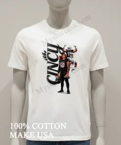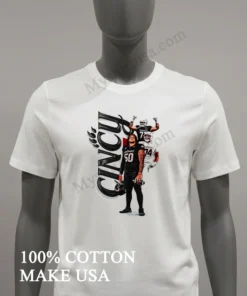 Now, let’s talk threads. This isn’t just any T-shirt; it’s a statement. The design elements are sharp, often featuring vintage-inspired graphics or bold, player-centric imagery that stands out from those generic mass-produced shirts you see everywhere. Think classic American streetwear with a modern edge. Crafted from 100% American Cotton, it’s got that perfect blend of softness and durability breathable for those nail-biting games, yet sturdy enough for everyday wear. I love pairing mine with distressed jeans and sneakers for a casual look, or layering it under a flannel for cooler evenings. To keep it looking pristine, just wash cold, inside out, and tumble dry low. Never iron directly on the print! You’ll find this tee making waves on Reddit’s r/CFB, Twitter under #BearcatsFootball, and in various Cincinnati fan groups on Facebook.