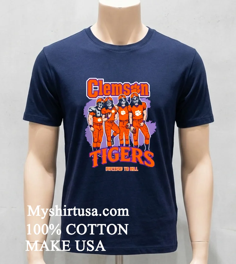 Now, let’s get into the nitty-gritty of why this tee stands out from the sea of ordinary. The design? It’s a masterclass in collaboration. You’ve got the iconic Clemson Tigers branding, but it’s reimagined with an edgy “Dressed To Kill” twist, probably in a distressed, worn-in graphic style that screams authenticity, not some cheap iron-on. This isn’t just a logo; it’s a statement, a mood. While other shirts might offer just a team name, this one offers an attitude. We’re talking about a high-quality, pre-shrunk, 100% American Cotton fabric that feels like an old favorite from the very first wear soft, breathable, and with just the right amount of stretch. It’s got that perfect relaxed fit, making it incredibly versatile. For game day, throw it on with your favorite denim shorts and classic sneakers. Heading out for a casual dinner? Tuck it into some high-waisted jeans, add a leather jacket, and you’ve got that effortlessly cool American style down pat. To keep this beauty looking fresh and feeling amazing for years, always turn it inside out before washing in cold water with similar colors. Skip the bleach, tumble dry on low, or better yet, hang it to dry to preserve the print and shape. A little care goes a long way in making this investment last.
