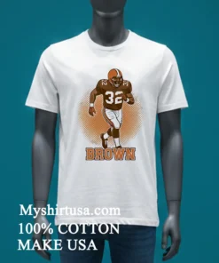 Let’s talk about what makes this shirt a real standout. Unlike some of those flimsy, mass-produced game-day tees, the design elements here pay true homage to Jim Brown. The iconic “32” is bold and clearly printed, with that perfect touch of vintage distress that makes it feel like a cherished piece from way back when. The classic Browns colors pop just right, not too bright, not too faded an authentic tribute. It’s a 100% American Cotton tee, so you know it’s got that comfortable, soft-to-the-touch feel from the moment you pull it on. The fit is standard crew neck, relaxed but not baggy, making it incredibly versatile. I love pairing mine with some worn-in jeans and my favorite sneakers for a laid-back weekend look, or even layering it under an open flannel shirt on a crisp fall day. To keep that legendary look lasting, just toss it in the wash with cold water, inside out to protect the print, and tumble dry on low. Easy peasy, just like a good T-shirt should be.