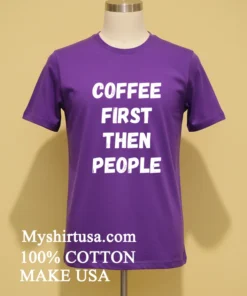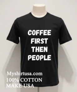 Ready to declare your morning allegiance? Why wait for that perfect comfy tee? Grab your own Coffee First Then People Shirt today! Crafted from 100% American Cotton for that soft, stretchy, breathable feel you crave, and priced at just $23 USD. Enjoy free 3-5 day delivery right to your door within the US. Embrace that Vintage, Streetwear, American style! #coffeefirst #americanfashion #graphictshirt #MyshirtusaStyle #streetwearusa