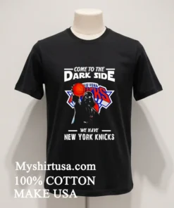 Let’s talk about what makes this shirt truly special. First, the design: a genius blend of galactic villainy with New York’s beloved basketball pride. The iconic “Come To The Dark Side” slogan, playfully recontextualized with “We Have New York Knicks,” instantly sets it apart from a plain team logo tee or a generic Star Wars graphic. It’s witty, it’s bold, and it’s a conversation starter. You won’t find this kind of creative mashup on every rack, making it a unique addition to your wardrobe. As for comfort and quality, we don’t cut corners. This tee is crafted from 100% premium American Cotton, giving it that soft, breathable feel you crave. It’s got just the right amount of stretch for all-day wear, whether you’re shooting hoops or lounging. The classic American style fit is relaxed but not baggy, perfect for pairing with your favorite distressed jeans, cargo shorts, or even layered under an open flannel shirt for a grunge-inspired look. To keep your “Dark Side” looking bright and your cotton feeling soft, machine wash it cold with similar colors, and tumble dry low. Avoid bleach to protect the awesome graphic, and iron inside out if needed. Treat it right, and this shirt will be a favorite for seasons to come.