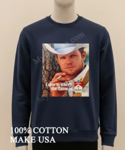 As an American consumer, I’m always looking for quality that lasts, and a style that speaks to me without screaming. This tee nails it. The design elements are what truly set the Come To Where The Flavor Is Marlboro Cowboy Smoking Shirt apart from your average graphic tee. It’s not some flimsy, mass-produced digital print; it’s a celebration of that legendary imagery, rendered with a vintage aesthetic that looks like it’s been your favorite shirt for years in the best way possible. It evokes wide-open spaces, a sense of adventure, and that quintessential American spirit. And let’s talk material: we’re talking 100% American Cotton, soft, breathable, and with just the right amount of stretch. It feels substantial, not flimsy, which is huge for me. Styling this bad boy is a breeze; throw it on with your favorite distressed denim and cowboy boots for a classic Western vibe, or layer it under an open plaid shirt and some chinos for a modern streetwear look. Want to elevate it? Tuck it into some high-waisted black jeans with a statement belt. To keep it looking good for ages, just turn it inside out, wash in cold water on a gentle cycle, and either tumble dry low or, even better, air dry it. That way, the print stays sharp and the fabric keeps its soft, comfortable feel.