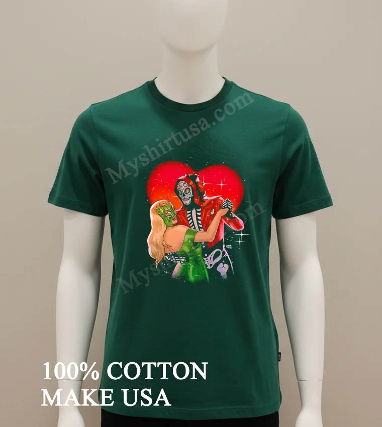 What grabs me about this tee is the design’s raw emotion. The dancing skeleton and masked woman transcend typical graphics, offering a unique narrative of love and mystery way more distinctive than those mass-produced designs. It speaks to a different kind of romance, you know? The shirt’s feel is top-notch: 100% American cotton, super soft, breathable, and stretches just right. I’d style it easily with ripped jeans and classic Vans, or layer it under a denim jacket for a cool, effortless look. For lasting vibrancy, I always wash it inside out in cold water, gentle cycle, and hang dry. You’ll definitely see this kind of unique art tee discussed on Reddit’s r/Fashion or TikTok’s #IndieStyle communities. It’s truly a statement piece!