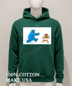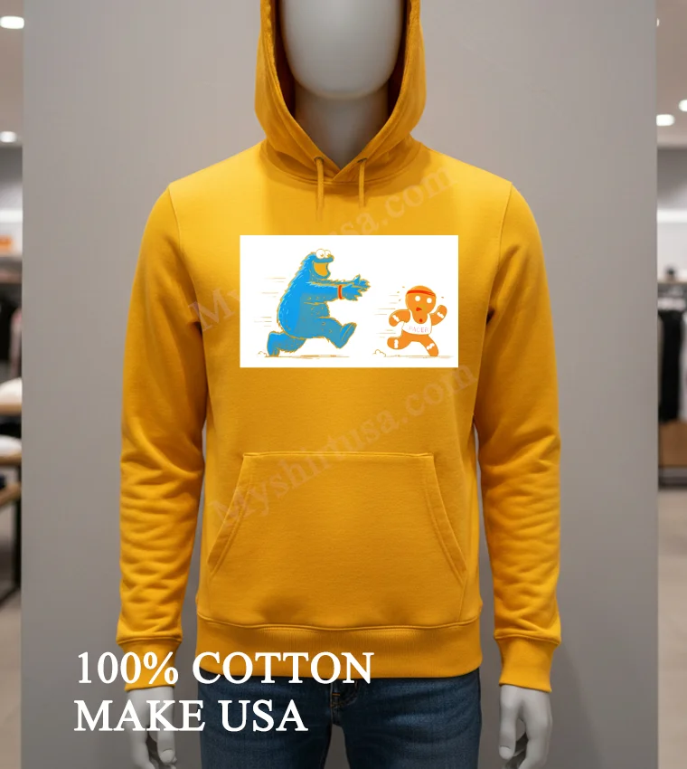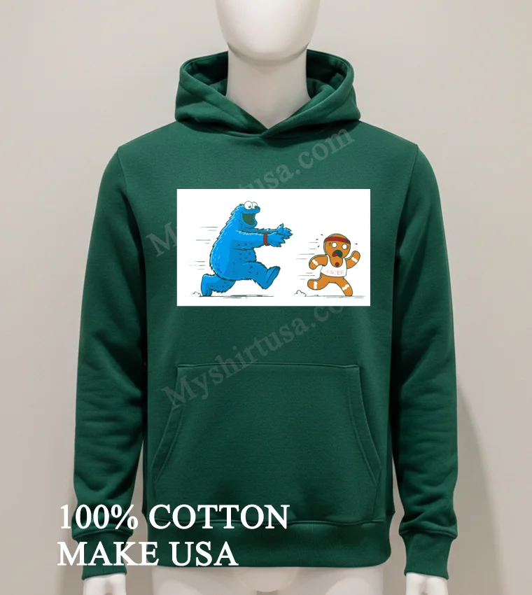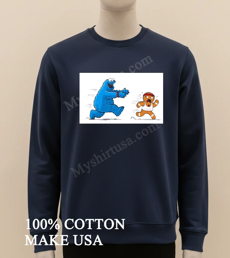 Ready for genuine joy? Our Cookie Monster Chasing Gingerbread Pacer Man Funny Cartoon Shirt is 100% American Cotton, soft, stretchy, breathable, for just $23 USD. Get 3-5 day US delivery! This is Vintage, Streetwear, and pure American style, delivered fast. Don’t wait grab yours today at Myshirtusa!