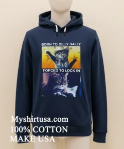 Remember that viral moment a few weeks back when Lizzo posted about needing a “mental health day” and just wanting to “dilly dally” around the house, free from the grind? It sparked a huge conversation online about self-care, embracing slow living, and finding joy in the small, unhurried moments. That’s exactly the vibe this Cowboy Cat Born To Dilly Dally Forced To Lock In Shirt captures. In a world constantly telling us to “lock in,” to hustle, to be productive 24/7, this tee is a playful rebellion. It’s for anyone who feels the pressure but dreams of those lazy Saturday mornings, sipping coffee, maybe chasing a sunbeam with their cat. This tee speaks to the current trend of conscious consumerism and personal expression moving away from fast fashion trends towards pieces that truly resonate with your personal philosophy. Whether you’re reclaiming your weekend, making a statement about work-life balance, or just love quirky animal graphics, this shirt is your badge of honor. It’s not just apparel; it’s a mood.