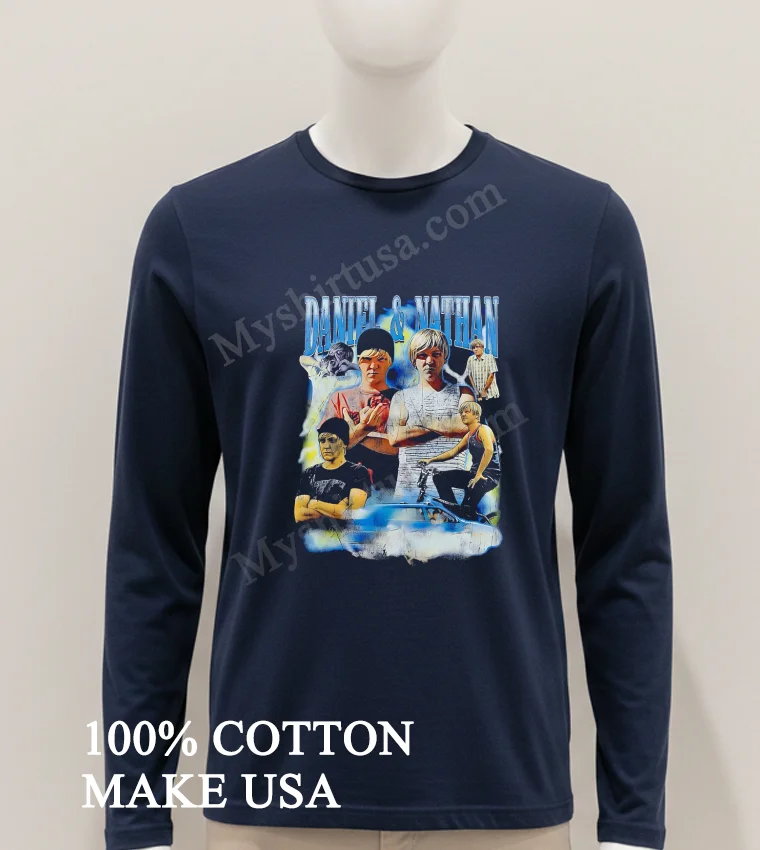 Let’s talk about what makes this tee a standout. The Daniel And Nathan Sims Blue Background Twins Graphic Design Shirt isn’t just another shirt; it’s a conversation starter. The vibrant blue background contrasts beautifully with the stylized twin graphic, offering a fresh, artistic edge you won’t find on every rack. Made from 100% American Cotton, it’s incredibly soft, stretchy, and breathable miles ahead of those stiff, scratchy alternatives. I love pairing mine with distressed denim and sneakers for a laid-back weekend look, or layering it under an open flannel shirt when the weather cools. To keep that awesome graphic sharp and the fabric feeling great, just machine wash cold, inside out, and tumble dry low. You’ll find tons of people showing off their style and discussing this tee on Reddit’s streetwear subreddits and various Facebook fashion groups.