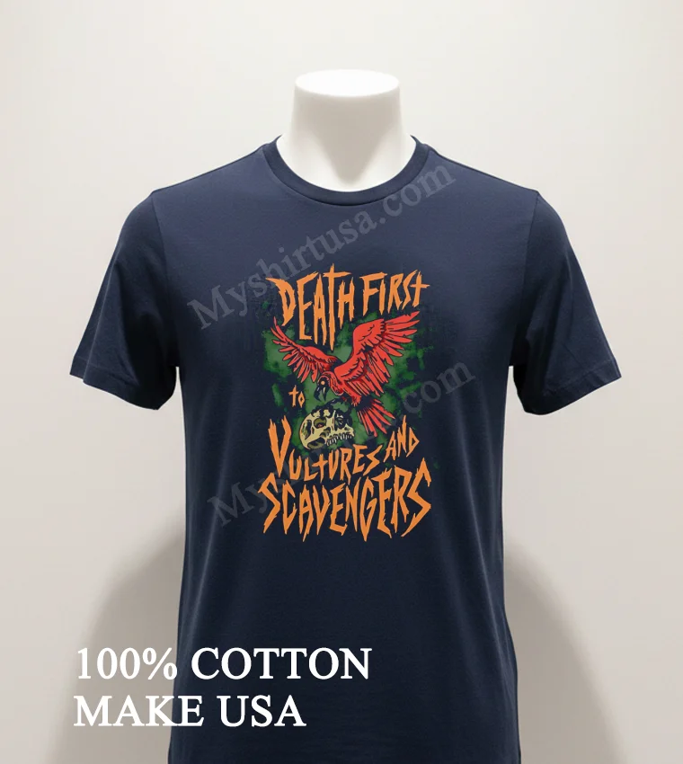 Ready to make a statement? Why settle for ordinary when you can own the Death First To Vultures And Scavengers Red Bird Skull Shirt? Crafted from 100% American Cotton, it’s super soft, breathable, and just $23 USD. Get yours with 3-5 day US delivery. Embrace Vintage, Streetwear, American style! #SkullTee #StreetwearUSA #DarkFashion #Myshirtusa #AmericanStyle