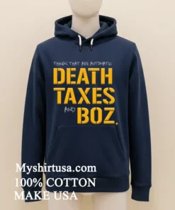 Remember when that viral tweet from a sports analyst about “the only three certainties in life” blew up after that crazy playoff game last month? Everyone was talking about it, and it immediately made me think of the Death Taxes And Boz Shirt. It’s perfect for those of us who appreciate a good laugh and a touch of cynical wisdom. Whether you’re heading to a casual tailgate, a backyard BBQ, or just chilling at home watching the latest season of your favorite show, this tee fits right in. It’s got that cool, vintage-inspired streetwear vibe that’s dominating American fashion right now. Forget fast fashion that falls apart; we’re all about durable, comfort-first pieces that express who we are, and graphic tees like this are leading the charge in personalized style.
