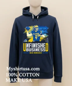 So, are you ready to wear your passion and declare your ‘Unfinished Business’? Why settle for less when you can have the best? Grab your Delaware Fightin Blue Hens Nick Minicucci Unfinished Business Shirt today! Crafted from 100% American Cotton, it’s soft, stretchy, and breathable all for just $23 USD. Enjoy swift delivery in 3-5 days across the US. It’s an investment in vintage, streetwear, American style.