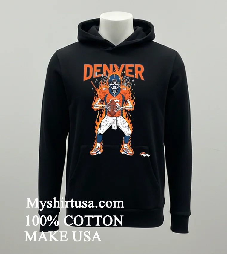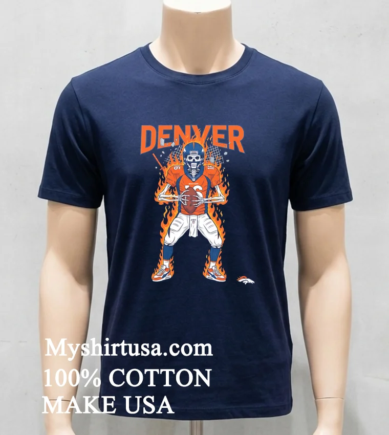 Ready to command attention with your game-day style? Why settle for ordinary when you can make an unforgettable statement? Experience the ultimate comfort of 100% American Cotton, soft, stretchy, and breathable. At just $23 USD, with lightning-fast 3-5 day US delivery, your Denver Broncos Men’s Football Skeleton Player Burning Shirt awaits! Embrace that Vintage, Streetwear, American style from Myshirtusa today!