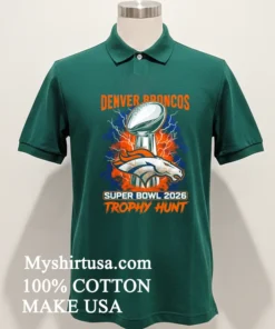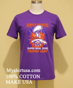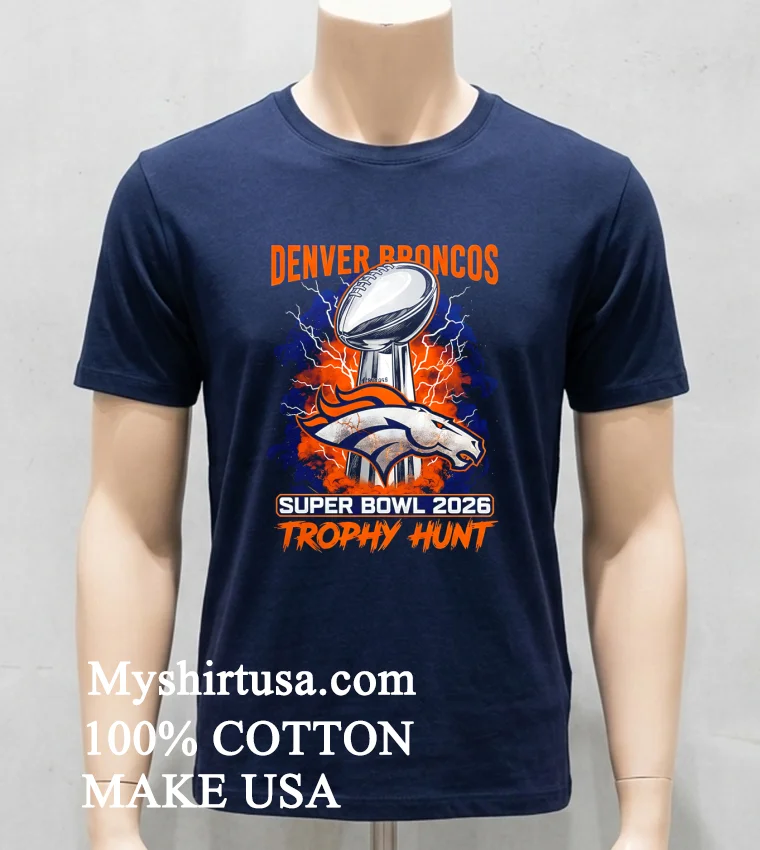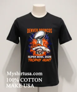 Join the hunt! Why just dream? Your Denver Broncos Super Bowl 2026 Trophy Hunt Shirt awaits! 100% American Cotton: soft, breathable, stretchy. Only $23 USD, with 3-5 day US delivery. Embrace Vintage, Streetwear, American style. Quality guaranteed by Myshirtusa. #vintagetshirt #americanfashion #Designtshirt #mytshirt #usashirt #streetwearusa.