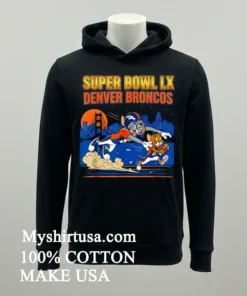 Ready for game day? Why settle for ordinary when you can own the legendary Denver Broncos Super Bowl Lx Tom And Jerry Tackles Shirt? Crafted from 100% American Cotton, soft, stretchy, breathable pure comfort for just $23 USD. We promise quality, beautiful T-shirts, delivered fast (3-5 days in the US)! Embrace Vintage, Streetwear, American style! Shop Myshirtusa now!