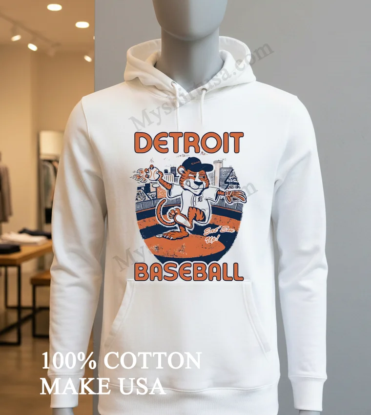 Ready to wear your Detroit pride? Why settle for anything less than a shirt that feels like home? Our high-quality, beautiful Detroit Baseball Eat Em Up Tiger Pitcher Mascot Graphic Shirt is crafted from 100% American Cotton soft, stretchy, and breathable. At just $23 USD, with 35 day delivery across the US, this Vintage, Streetwear, American style tee is a home run!